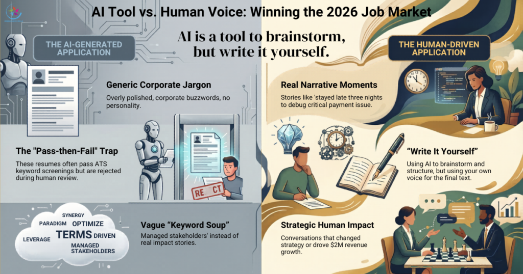 Second, they lack the human element that actually matters. Your resume needs to tell your story in your voice. AI doesn’t know the specific project where you stayed late three nights to debug a critical issue. It doesn’t know the conversation you had with a stakeholder that changed the entire direction of a strategy.