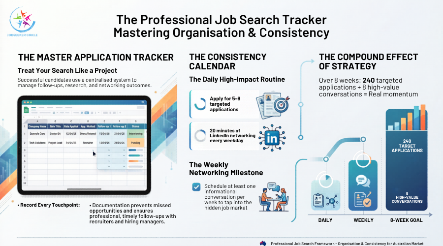 Here’s something that doesn’t get talked about enough: the difference between job seekers who land roles in 8 weeks versus 8 months often isn’t skills or experience—it’s organization and consistency.